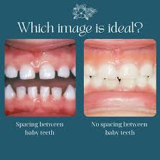 Na zgornjih slikah je lepo vidna razlika med ustrezno in manj ugodno razporejenimi mlečnimi zobmi. Pri optimalnem razvoju so mlečni zobje rahlo razmaknjeni – približno toliko, da bi med njimi lahko stal kovanec za en cent – kar pomeni, da čeljust nudi dovolj prostora za nadaljnji razvoj.