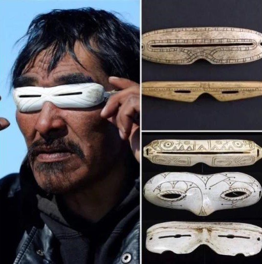 Inuiti in Yupik ljudstva so to razumeli že tisočletja nazaj: iz karibujevih rag, kosti, drevesnega lesa ali volkača so ustvarjali “snow goggles” – očala z zelo ozkimi horizontalnimi reži, priljubljena kot ilgaak ali nigaugek. Te reže so delovale kot naravi prilagojena zaslonka – zmanjšale obseg svetlobe in hkrati povečale ostrino videnja, zavrle bleščanje in preprečevale fotokeratitis, preden je obstajala tehnologija.